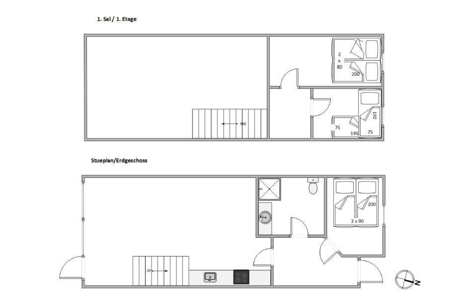 1 Dobbeltseng, 2 Enkeltsenge, 1 Etageseng