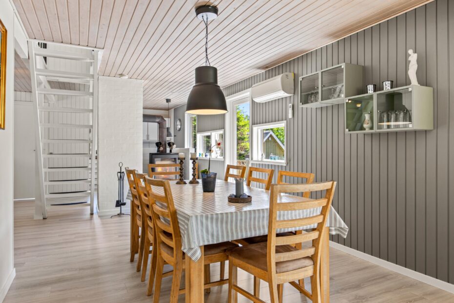 Dette charmerende sommerhus er renoveret i 2023 og byder jer velkommen med 146 komfortable kvm. Hunden er også velkommen. Ideelt til den større familie eller 2 mindre familier, som holder ferie sammen. En dejlig feriestemning med brændeovn og spa. Udendørs er der en hyggelig grillplads på plænen og et drivhus, som benyttes som lysthus på kølige dage.