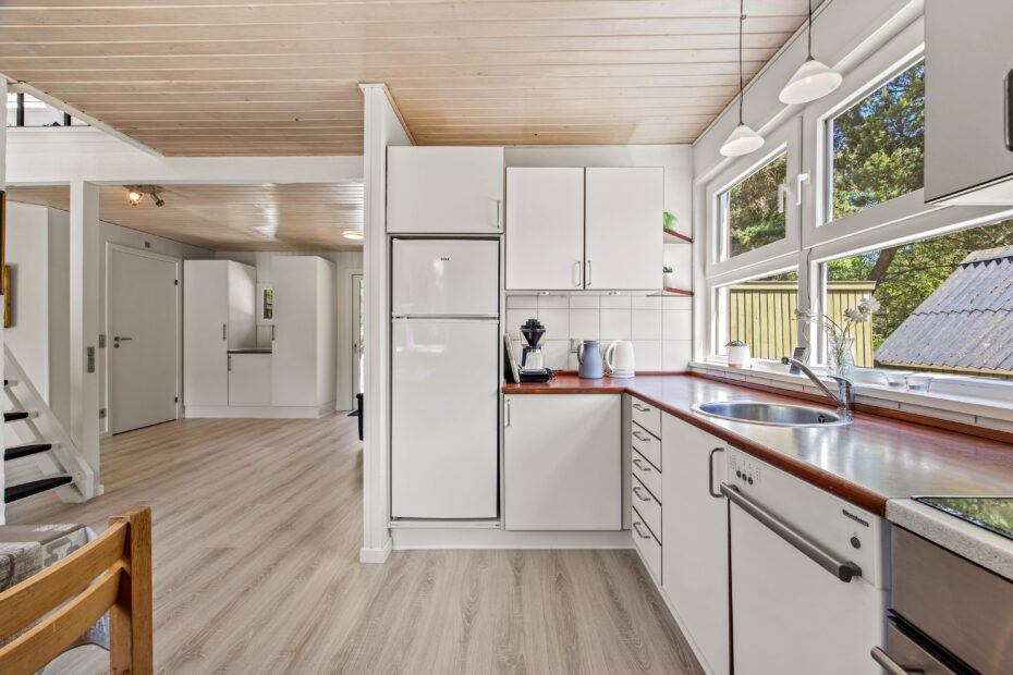 På Dalen 21 vil I føle jer hjemme straks, I træder ind ad døren til det charmerende sommerhus. I opholdsstuen er et fint lysindfald gennem glasvæggen i gavlen, her kan I hygge jer ved varmen fra brændeovnen, spille et spil eller se en film sammen på TV. Køkkenet indeholder alt, hvad I behøver for at forkæle hinanden med hjemmelavede måltider, uanset om I ønsker simreretter, en fiskedag eller byg-selv-burger.