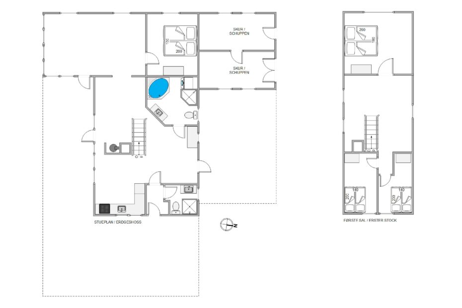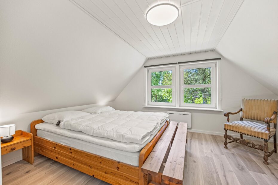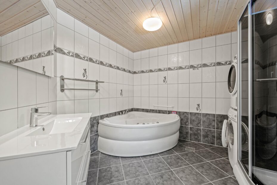 De 2 badeværelser har gulvvarme, så I ikke behøver at frygte kø eller kolde fødder under tandbørstningen. I det ene er også et spabad, så I kan slappe af med lidt wellness på ferien. De 4 soveværelser er forsynet med dobbeltsenge, så I kan sove godt ud i den friske vesterhavsluft. I behøver ikke at undvære moderne fornødenheder, som vaskemaskine, tørretumbler, opvaskemaskine og en energibesparende varmepumpe på ferien.