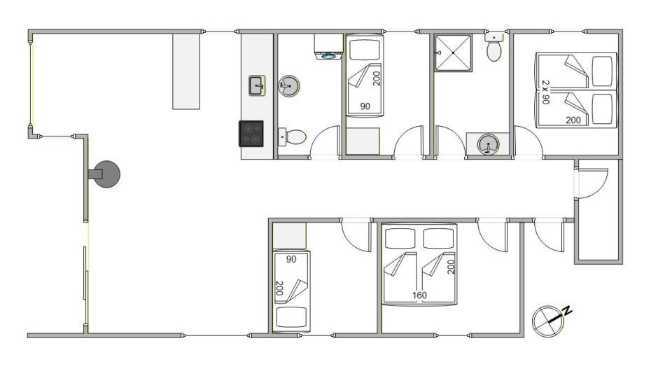 De praktiske opgaver er hurtigt klaret på ferien. Sommerhuset er nemlig udstyret med opvaskemaskine i køkkenet samt et depotrum med vaskemaskine og tørretumbler. Badeværelset har gulvvarme, og en energivenlig varmepumpe sikrer jer den helt rigtige rumtemperatur hele året rundt.