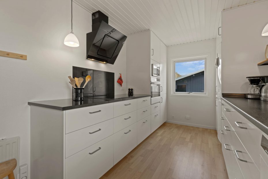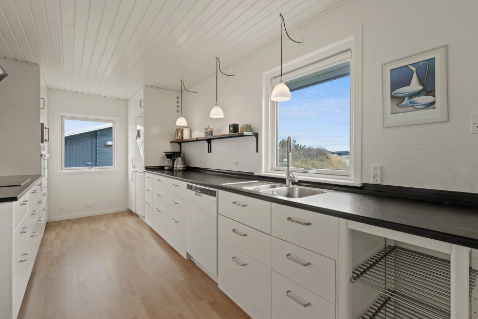 Det moderne køkken er udstyret med alt, hvad I behøver for at forkæle hinanden med lækre retter – her kan I lave mad sammen i givende arbejdsfællesskaber. Der er 4 værelser i feriehuset, 2 med dobbeltsenge, 1 med to enkeltsenge og 1 med en dobbelt sovesofa. Her kan I hvile ud og sove rigtig godt i den friske vesterhavsluft.