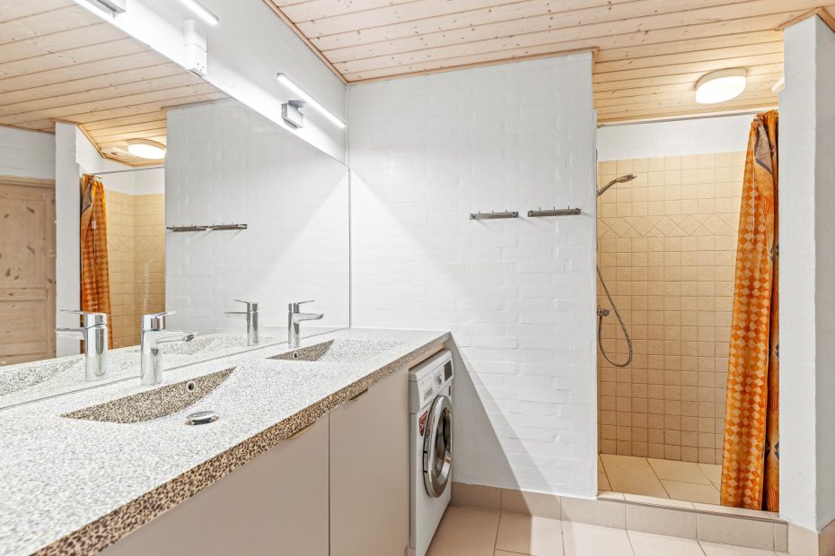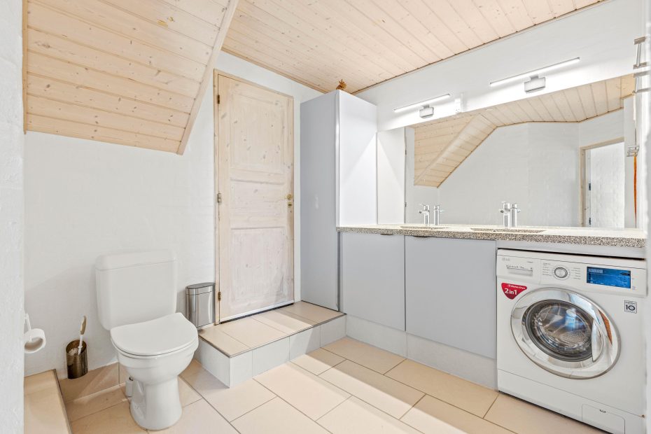 Fordelt på de 189 m2 får I her 5 soverum, hvoraf 2 er med dobbeltseng og de resterende 3 er med hver 2 enkeltsenge. Derudover får I her 2 badeværelser med bruseniche og gulvvarme – her er der altså ingen trængsel om morgenen. Desuden er det ene også indrettet med vaskemaskine og tørretumbler.