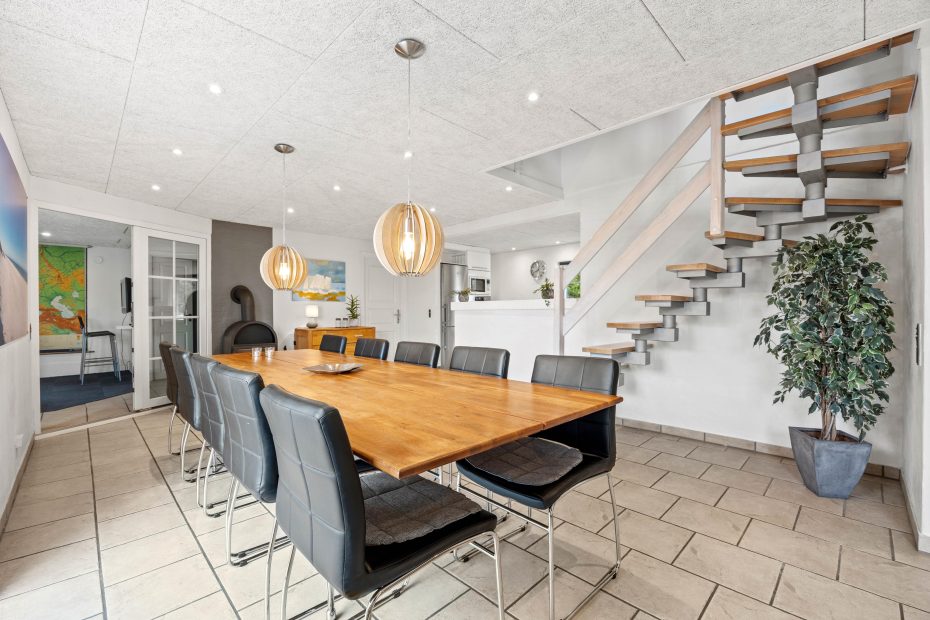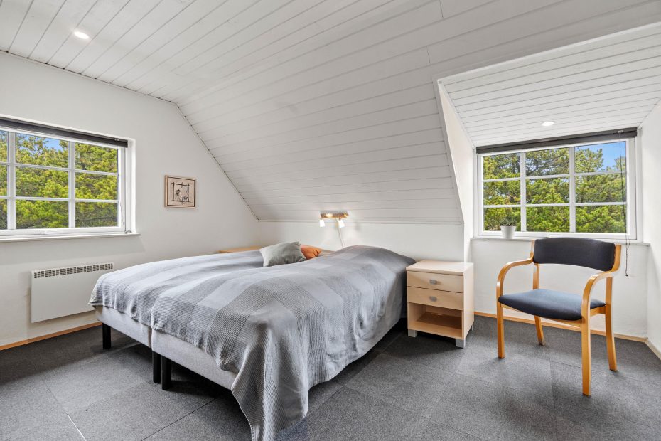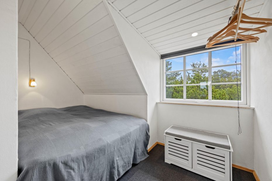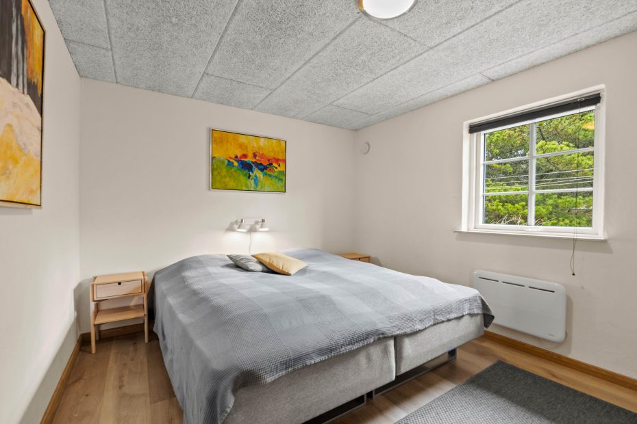 I 4 af de 5 soverum er der dobbeltsenge, og i det 5. soverum, som må betegnes som et hyggeligt lille kammer, er der en trekvartseng. Her vil især jeres børn elske at sove under de skrå vægge.