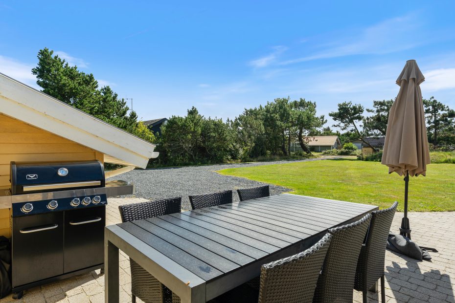 På Skippervej 8 får I et skønt udeareal med en velholdt græsplæne og en stor terrasse med plads til hele familien. Til glæde for de mindste feriegæster er der lavet en sandkasse, så de kan lege løs, mens I nyder varmen tilbagelænet i husets liggestole og havemøbler.