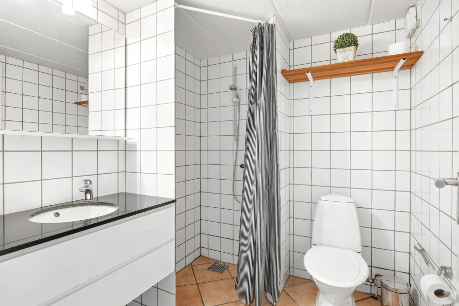 Fra alrummet er der udgang til den lille, sydvendte terrasse, som er både afskærmet og delvist overdækket. Her finder I altid læ til at nyde det gode vejr og den friske luft, og om aftenen kan I tænde op i grillen og spise en god middag i aftensolens skær. Der er også en lille legeplads tæt på ferielejligheden, hvis I har små børn med.