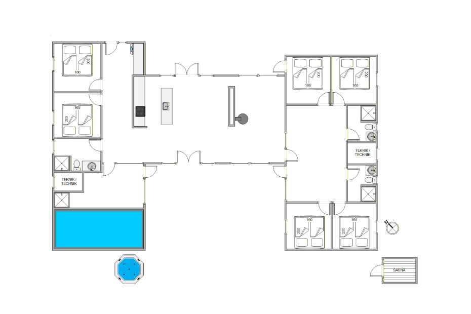 Søren Gades Mark 16A rummer 3 dejlige badeværelser, alle med gulvvarme, så I kan holde fødderne lune også på kolde dage, mens I nyder, at velværefølelsen breder sig i kroppen, og får I lyst til lidt feriekonkurrencer og fysisk aktivitet, står både bordtennisbord og billardbord klar til en lille dyst, eller I kan hoppe i poolen til optimal wellnessfølelse.