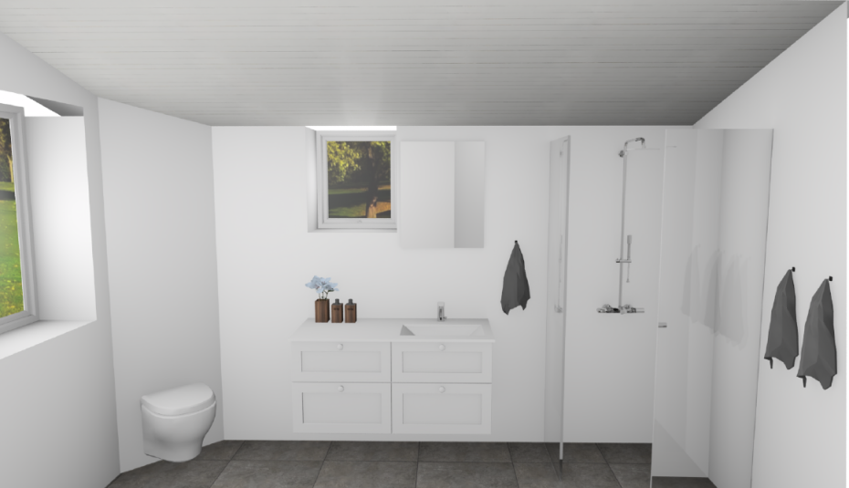 I sommerhuset i Ho kan I slappe af i vildmarksbadet efter en dag på farten eller nyde en filmaften i stuen via parabolen, mens luft-til-luft-varmepumpen sikrer et behageligt indeklima i det lille hus.