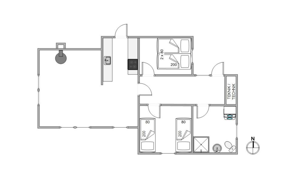 I soveværelset finder I 1 dobbeltseng, mens det andet soverum tilbyder 2 enkeltsenge. Dermed er huset idéelt for familier med børn eller små grupper af venner. På det fine badeværelse kan I tage et forfriskende brusebad, så I er klar til nye, spændende dage, og her kan I også vaske feriegarderoben i husets vaskemaskine.