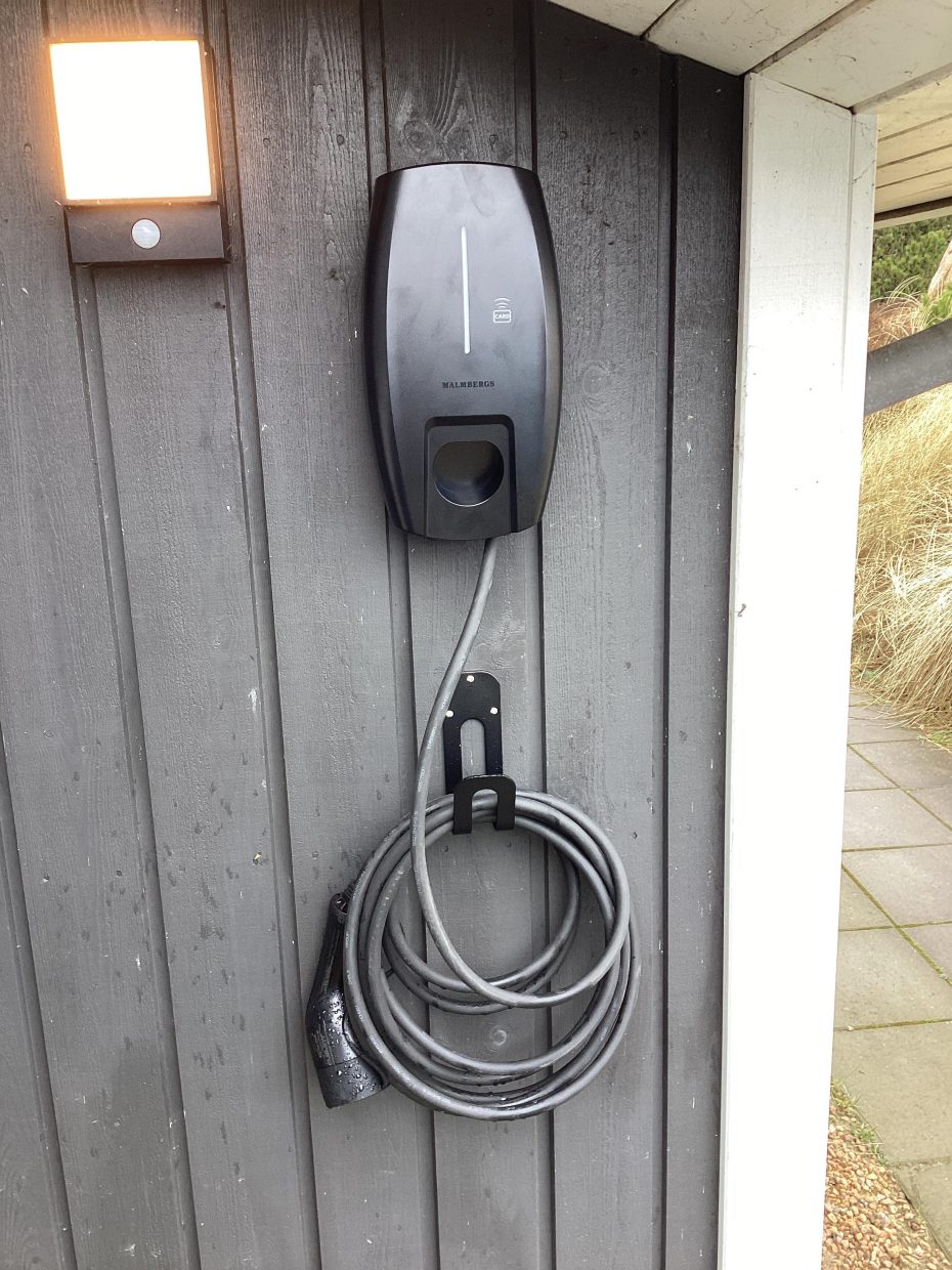 Derudover findes der ved huset en ladestation til elbiler med tilhørende Type 2-ladekabel.