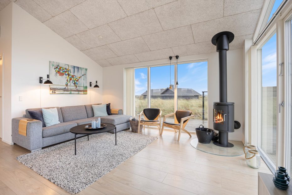 Et flot og indbydende feriehus beliggende på en helt unik klitgrund i Bjerregård. Sommerhuset er placeret på grunden, så udsigten fra køkken og stue bliver bedst muligt. På den måde får du fornemmelsen af at bo midt i denne smukke natur. Og med brændeovnen knitrende i baggrunden og en kop varm kakao, kan du nyde ægte ferie på Holmsland Klit.