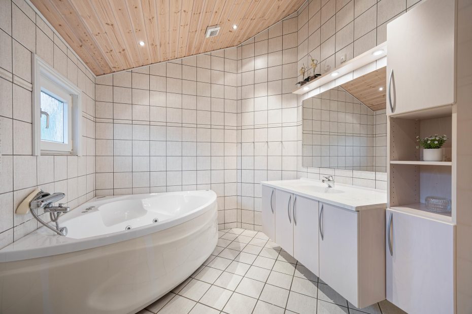 Et feriehus med alt hvad man kan ønske sig, har naturligvis også 2 badeværelser. Et stort badeværelse med bruser, boblebad og sauna, samt et lidt mindre med bruser og toilet. Begge har selvfølgelig gulvvarme.