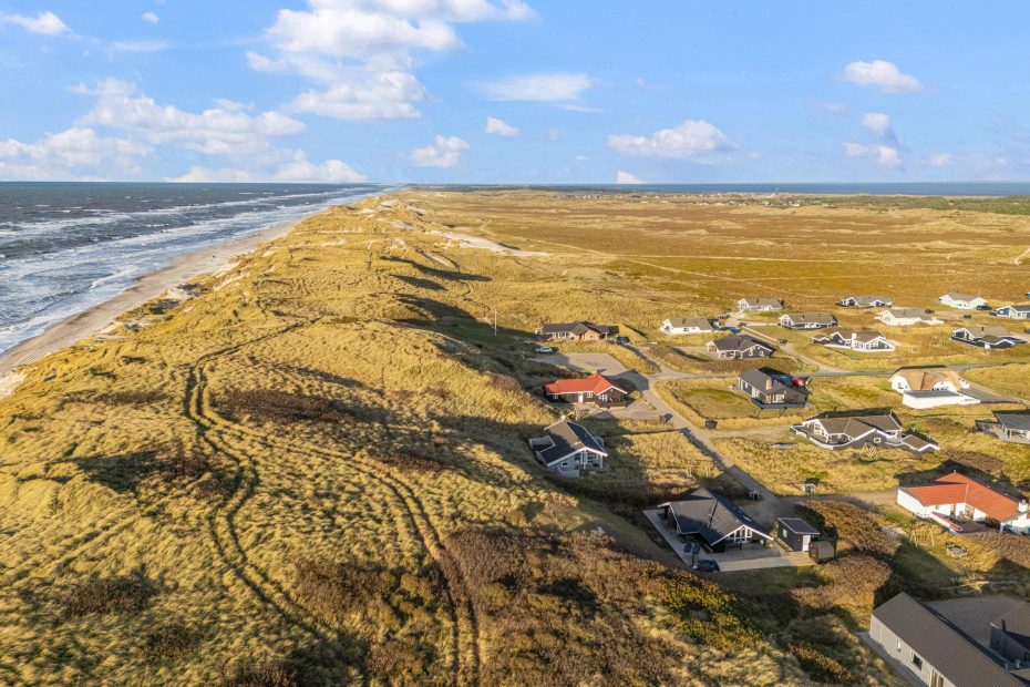 Sommerhuset har en fantastisk beliggenhed i Bjerregård på en ugeneret klitgrund i første række. Fra den afskærmede terrasse kan I nyde lyden af Vesterhavet, som ligger blot 50 meter fra sommerhuset. Den naturskønne beliggenhed mellem Vesterhavet og Ringkøbing Fjord er ideel til gode gåture eller leg på den smukke sandstrand. Den lokale købmand ligger 1400 meter fra sommerhuset på Bjerregårdsvej 392.