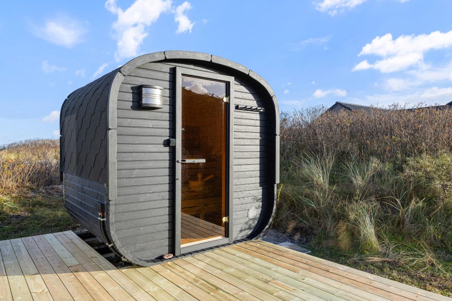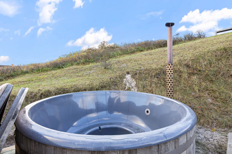 På den delvist overdækkede terrasse kan I nyde aftenen med en hyggelig grillaften i fællesskab. Bagefter inviterer vildmarksbadet i haven sammen med udendørssaunaen jer til at slappe af under den stjerneklare himmel, mens I lytter til havets rolige brusen bag klitterne.