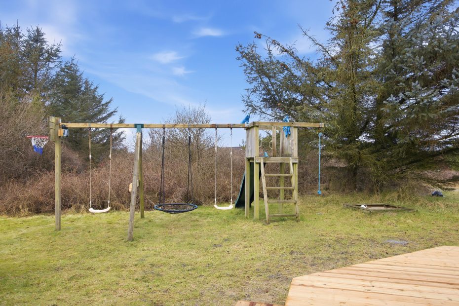 Dette 10 personers poolhus i Bjerregård er beliggende på en rolig sidevej på en fredfyldt naturgrund med både plæne, træer og dejlig terrasse. Her er børnevenligt med både sandkasse, gynger og rutsjebane.