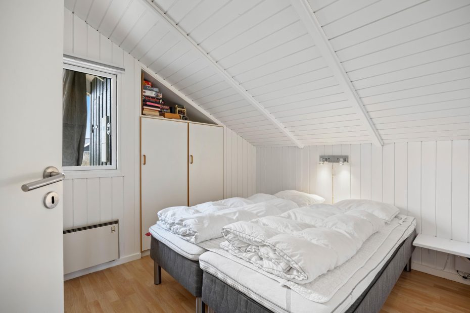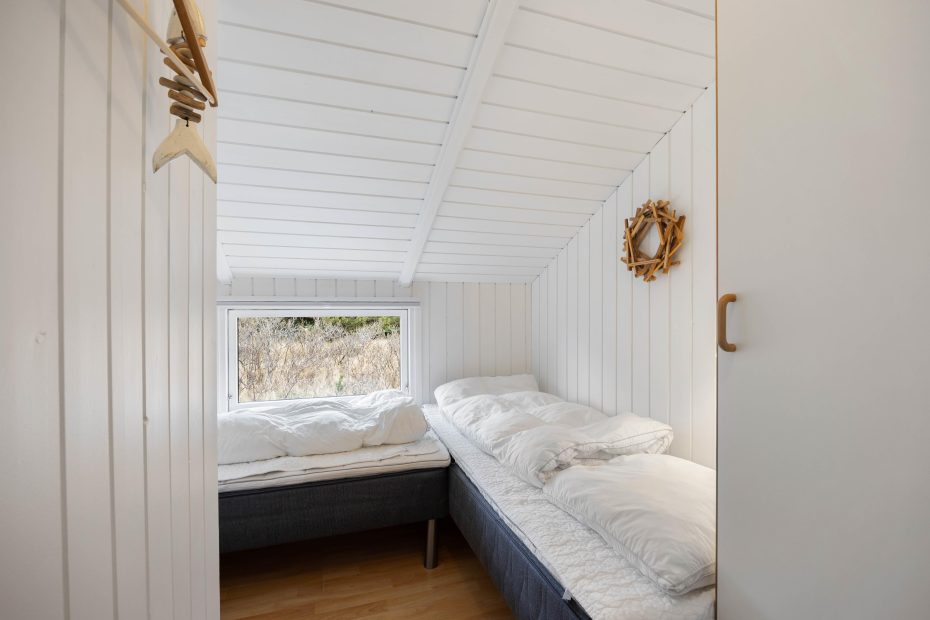 Der er 4 soveværelser i sommerhuset, som alle er med trægulve. 2 af værelserne har hver en dobbeltseng, og de sidste 2 værelser har hver 2 enkeltsenge.