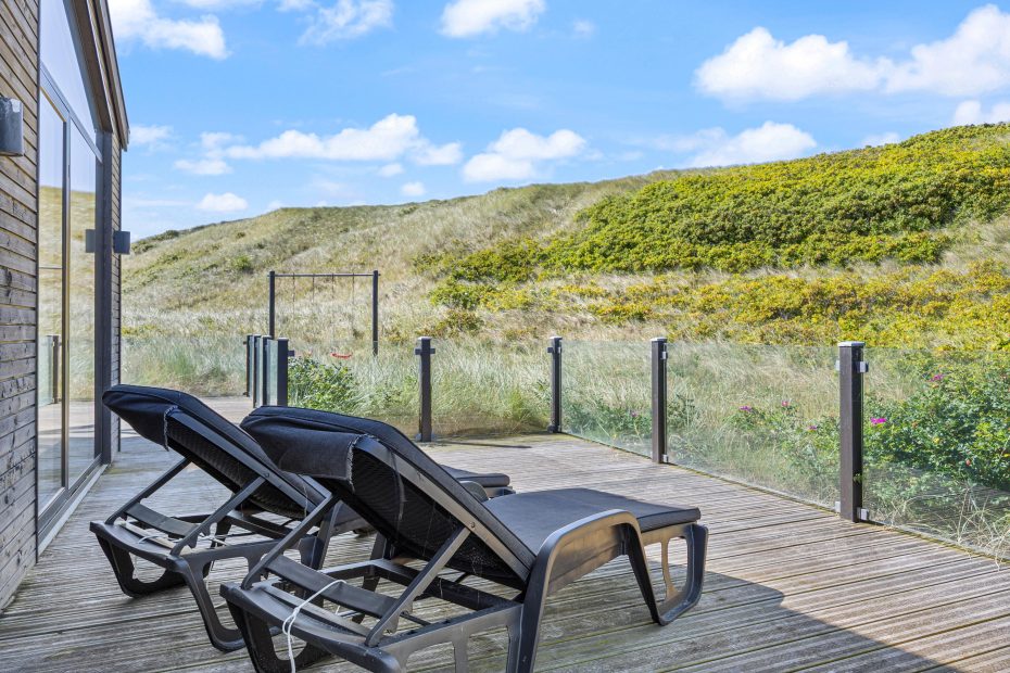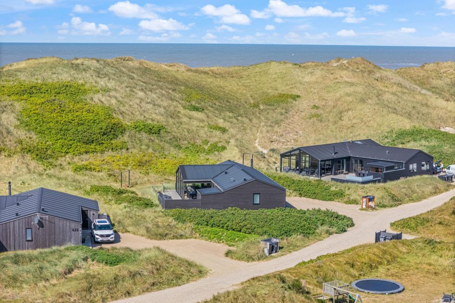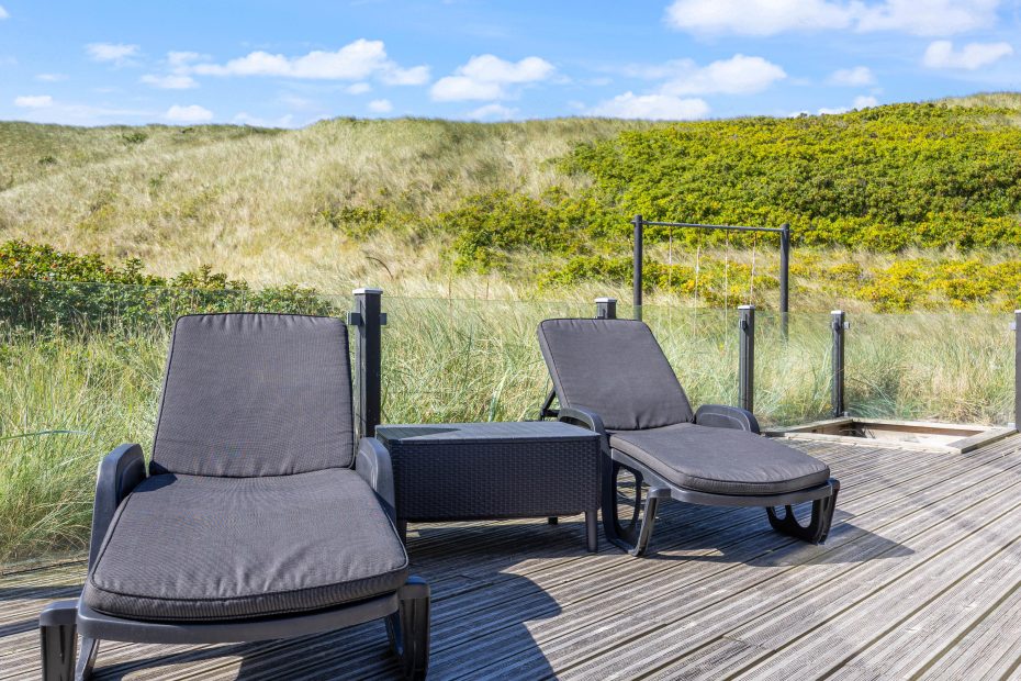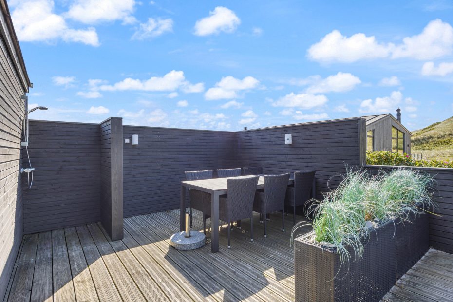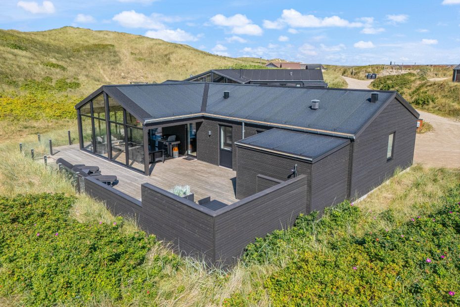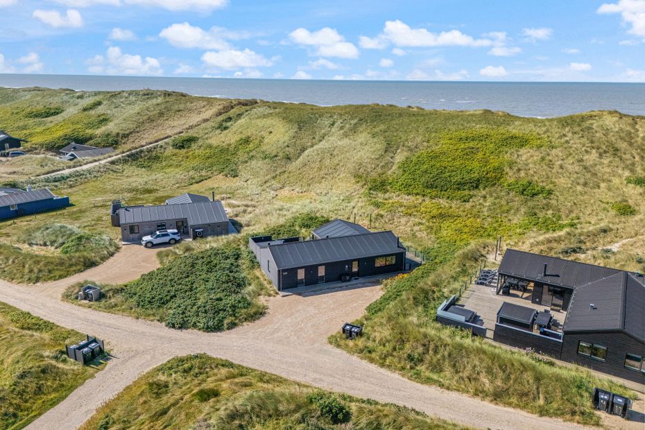 Kun et stenkast fra det brusende Vesterhav ligger dette fantastiske feriehus med plads til 6 personer. Den moderne og stilfulde indretning vil opfylde selv den mest kræsne feriegæsts drømme, og på den lækre terrasse – med udebruser – kan det dejlige solskinsvejr nydes i fulde drag. Udebruseren kan benyttes fra april til november. Hunden er også tilladt her.