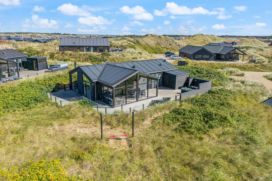 Feriehuset på Bjerregårdsvej 435 er opført i 2019 i flotte materialer, og den stilfulde og moderne indretning sætter rammerne for en luksuriøs ferie lidt ud over det sædvanlige. De lækre møbler passer perfekt ind, og de små dekorationer skaber en hyggelig atmosfære.