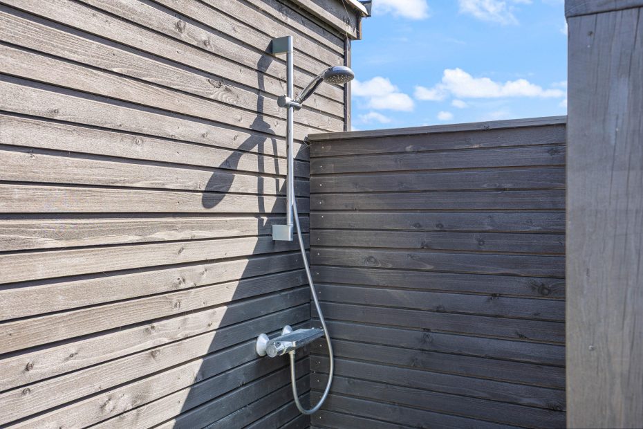 Feriehuset har en helt fantastisk beliggenhed i første klitrække. Der er kun 50 meter til stranden, og både store og små kan følge med på den korte gåtur over strandopgangen. Når I kommer hjem fra en hyggelig dag ved havet, kan I skylle fødderne rene i jeres helt egen udebruser på terrassesom kan benyttes fra april til november.