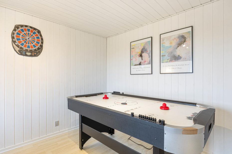 På en regnvejrsdag kan I blive underholdt i sommerhusets aktivitetsrum, som både byder på bordfodbold, air hockey og dart. Her kan hele familien få mange timer til at gå, og måske I kan holde nogle rigtig spændende turneringer.