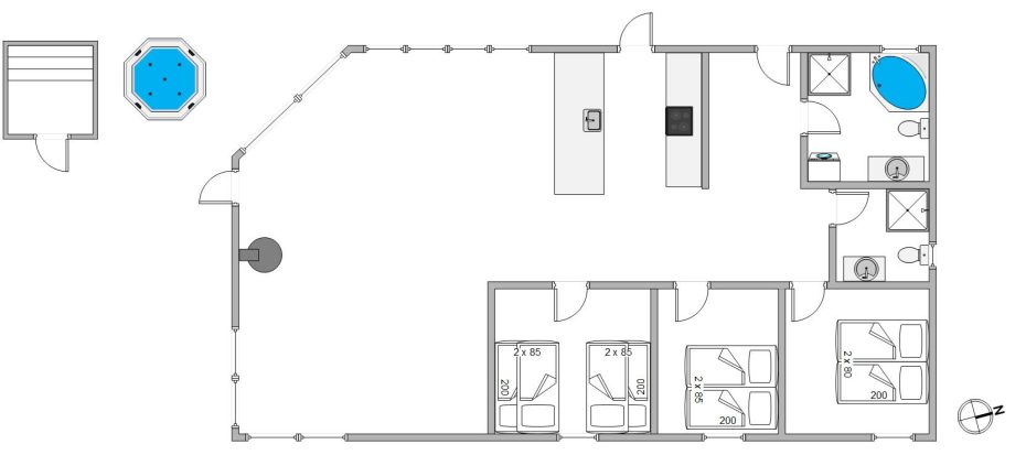 Sommerhuset er perfekt til jer, som ønsker ro og afslapning på ferien. Sommerhuset har 2 badeværelser med gulvvarme, og på det ene er der endda et spabad, som I kan hoppe i efter en dag i naturen.