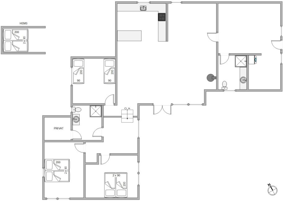 2 Dobbeltsenge, 2 Enkeltsenge, 2 Sovepladser Hems