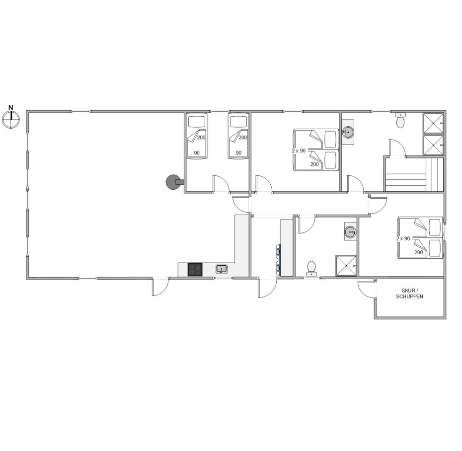 Sommerhuset har alle de praktiske faciliteter, der er med til at give jer endnu mere tid sammen under ferien. Brug jeres ferie på afslapning, hygge og sjov, og lad opvaskemaskinen, vaskemaskinen og tørretumbleren sørge for det praktiske arbejde.