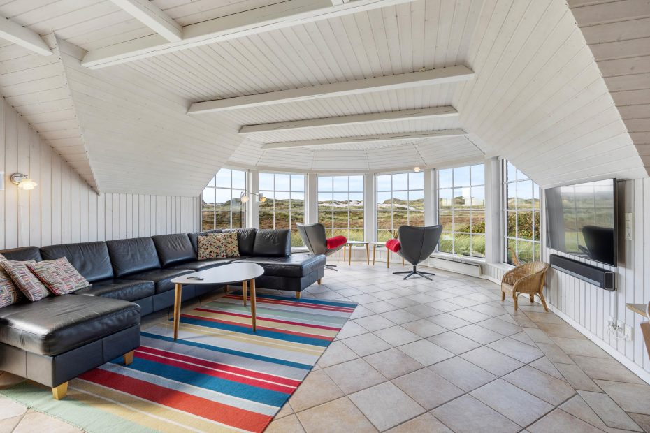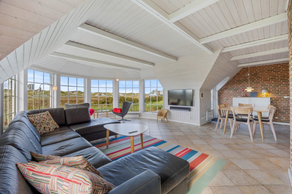 Når I alle er vågnet, kan I sammen nyde en lækker brunch omkring spisebordet i det store opholdsrum, hvor stue og køkken kobles sammen. Her er lyst, et rengøringsvenligt klinkegulv samt panoramaudsigt, der kan nydes gennem stuens vinduer. Sid her med en god bog og beundre landskabet. Også her kan I samles til hyggelige spilleaftener eller runde aftenen af med en god film. Filmen kan streames vha. Apple TV, og så kan I med fordel tænde op i brændeovnen, der gør det hele lidt mere hyggeligt. Desuden er der også en varmepumpe i sommerhuset.