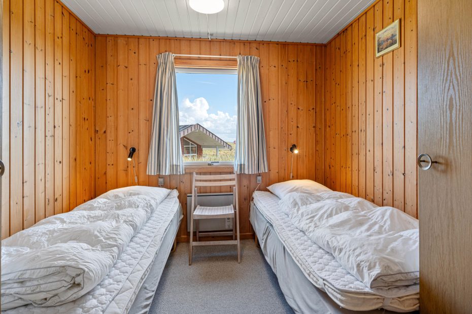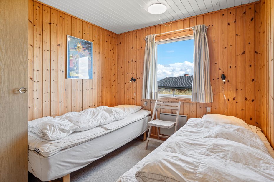 Her er plads til 6 feriegæster, som til natten kan fordele sig på 3 soveværelser, hvoraf det ene er indrettet med en dobbeltseng. De sidste 2 værelser er indrettet med 2 enkeltsenge på hver.