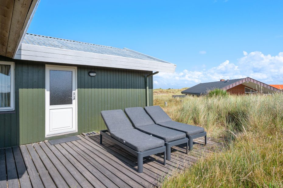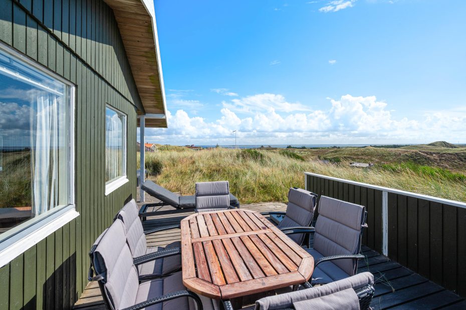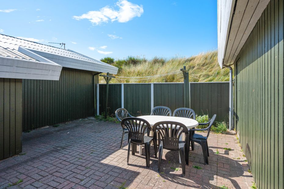 Til feriehuset hører naturligvis også en rigtig dejlig terrasse. Sommerhuset har desuden en lille, lukket gårdsplads med meget læ. Det dejlige udeområde har også en skøn udsigt til fjorden. Til terrassen hører gode havemøbler, liggestole og grill, så rammerne er lagt til hyggelige grillaftener med venner og familie.
