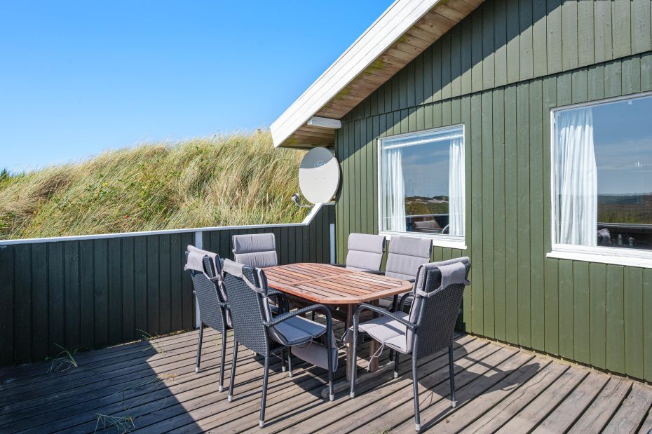 På en fantastisk og helt unik naturgrund finder du dette velindrettede og hyggelige feriehus. Fra feriehuset, og ikke mindst feriehusets terrasser, har du en pragtfuld udsigt over det smukke område og Ringkøbing Fjord. Et perfekt valg for dig, der gerne vil bo i et naturskønt område med flot vandudsigt.