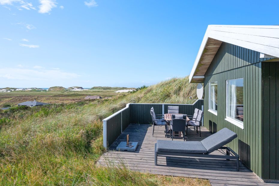 Ferienhaus mit einmaligen Blick zum Fjord und zur Nordsee. Das Haus liegt oben auf einer Düne. Natürlich gibt es dann mehr Wind.