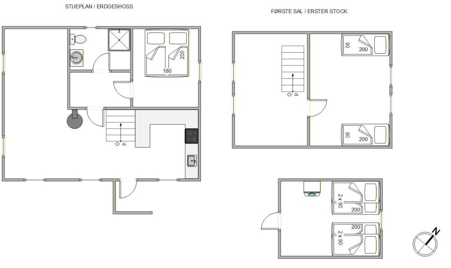 På førstesalen finder I TV-stuen, hvorfra der er en formidabel udsigt mod nordøst ud over sommerhusområdet og Ringkøbing Fjord. Et af de 3 soveværelser befinder sig også på 1. salen, og herfra har I tilsvarende en fantastisk udsigt over klitterne.