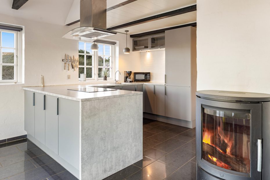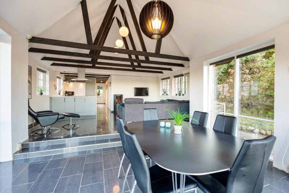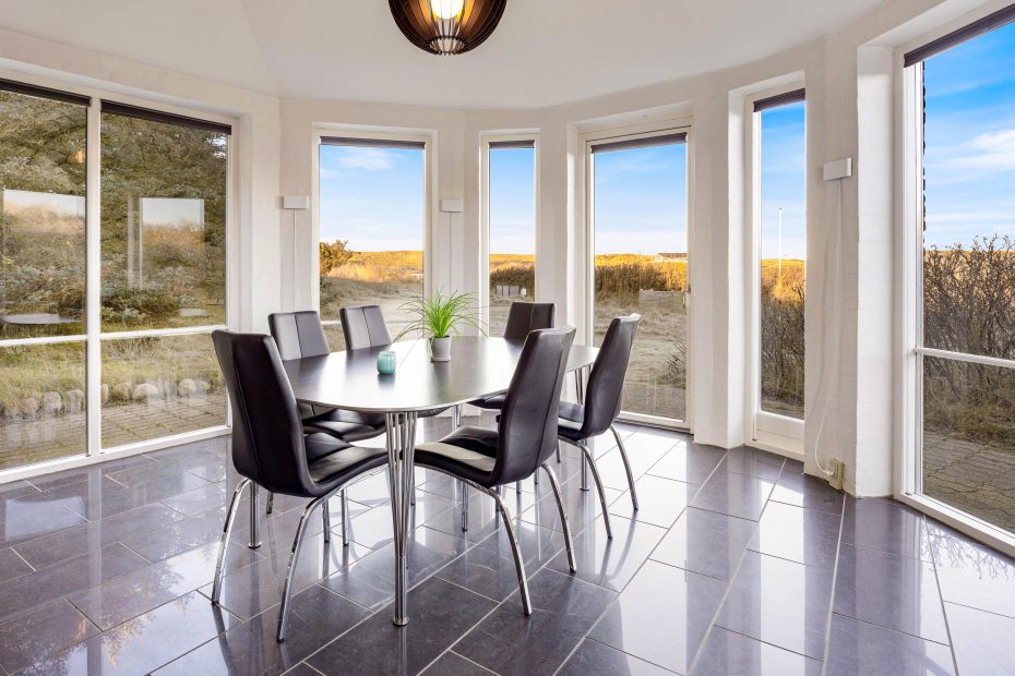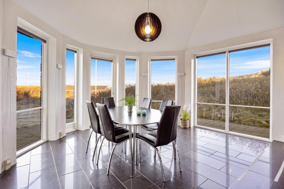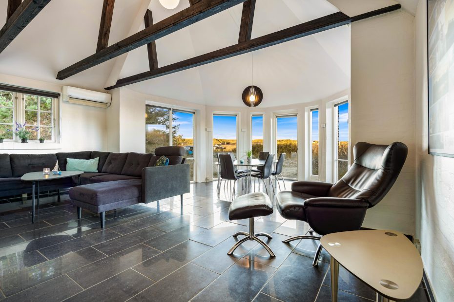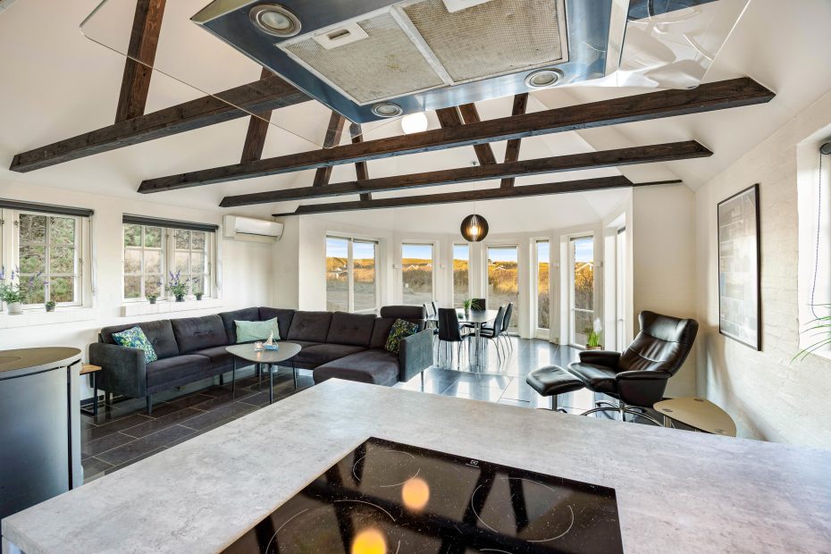 Feriehuset, som er renoveret i 2020, er godt indrettet – bl.a. med spiseplads i den flotte kanap med de store vinduer, som tager sollyset og naturen med helt ind i stuen. Her kan I også om aftenen nyde solnedgangen over klitterne, og derefter stjernehimlen, hvis vejret ikke er til at sidde udenfor.