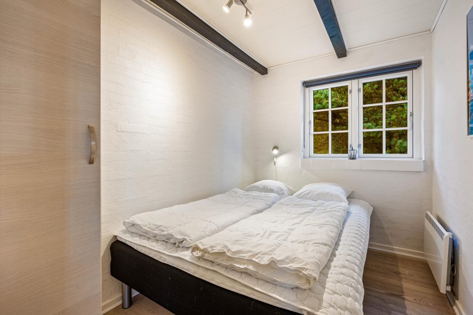 Fra det praktiske og velindrettede badeværelse er der indgang til saunaen, hvor I kan lade jer gennemvarme efter en lang dag ved stranden eller i klitterne. På badeværelset finder I også en vaskemaskine, som er særdeles praktisk, hvis I har børn med eller er her på et lidt længere ophold.