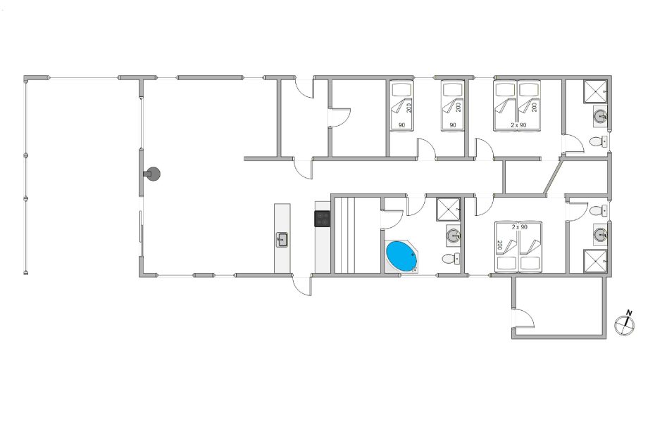 Sehr schönes und modernes Ferienhaus, welches unmittelbar in Strandnähe liegt. Das Haus verfügt über 3 Schlafzimmer wo von zwei mit Doppelbetten und eins mit zwei Einzelbetten ausgestattet sind. Zwei Schlafzimmer haben direkten Zugang zum jeweils eigenen Badezimmer. Ein Wellnessbereich mit großer Sauna und Whirlpool ist ebenfalls vorhanden. Das gesamtes Haus verfügt über eine Fußbodenheizung. An kalten Tagen kann ein Feuer im vorhandenen Kamin angezündet werden. Abschließend bleibt die überdachte Terasse zu erwähnen, welche ein Draußen sein auch an kühleren oder regnerischen Tagen ermöglicht.