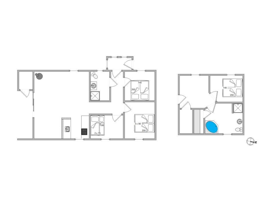 Tømmespa, 2 badeværelser (Gulvvarme).