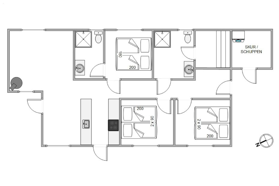 Ved sommerhuset er der en udebruser, som er rigtig dejlig efter en lang gåtur ved stranden med bare fødder i sandet. Udebruseren kan benyttes fra april til november.