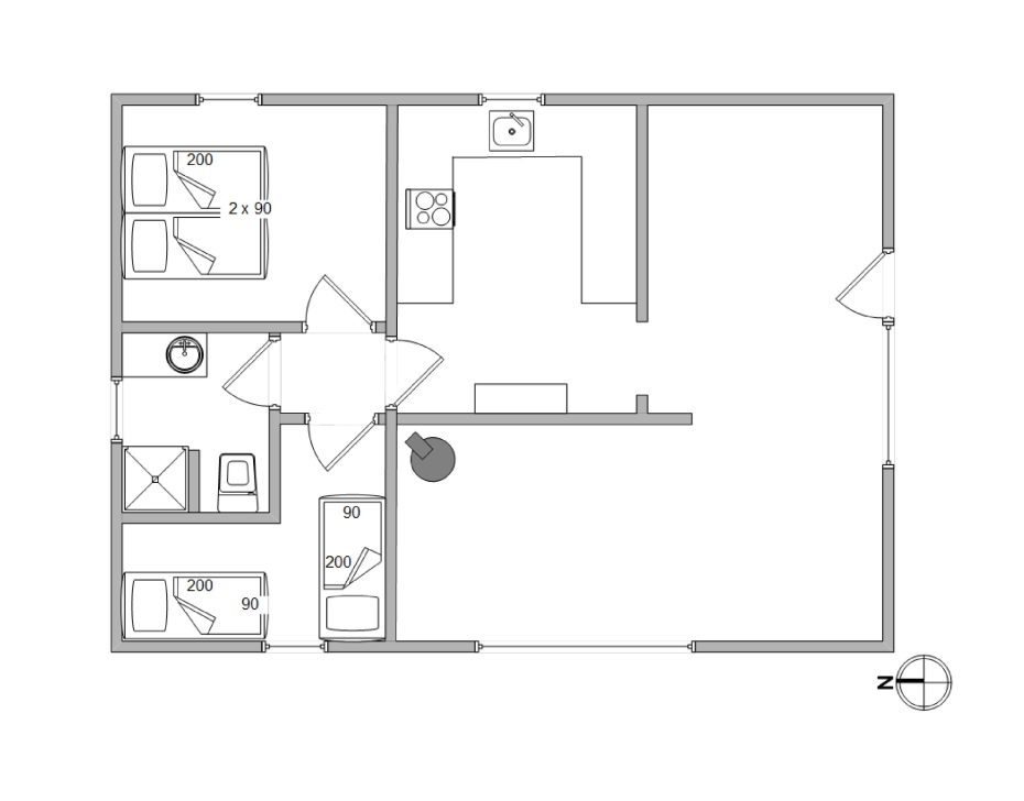 Brændeovn, fladskærms-tv, parabol (tyske kanaler), dvd, radio m/cd-afspiller.