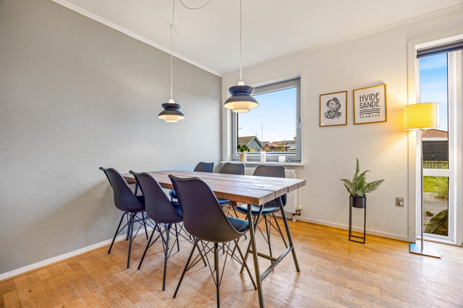I den populære ferieby Hvide Sande ligger dette skønne feriehus til 6 personer. Beliggende på Mellemvej 5 kan I fra sommerhuset nå til den mest fantastiske sandstrand ved Vesterhavet på få minutter. Samtidig er der kun en ganske kort gåtur indtil Hvide Sande Havn, hvor I kan finde flere specialbutikker og hyggelige spisesteder og cafe ér.