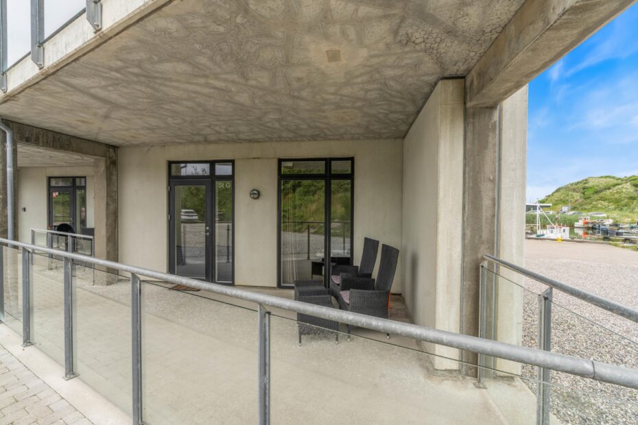 Fra den østlige terrasse kan I virkelig mærke, at I bor midt i det charmerende havnemiljø, og mens I nyder morgenkaffen og den friske luft, kan I betragte de små joller og lytte til kutternes karakteristiske motorlyd, mens de forlader havnen og sejler ud mod fjorden i morgensolen.