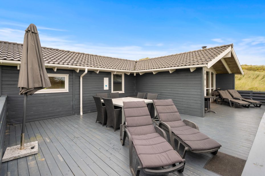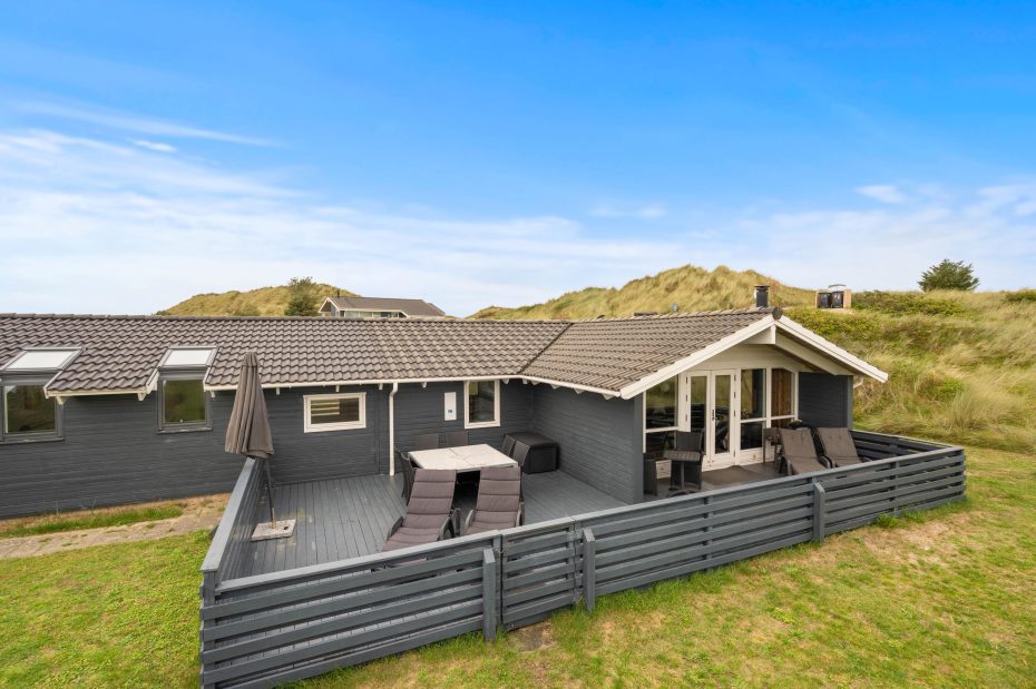 På den rummelige lukkede terrasse har I mulighed for at nyde en masse timer med sjov og leg uden bekymring for at børn bliver væk, da hele terrassen er indhegnet. Terrassen er omringet af den skønne karakteristiske natur, som hedeområdet på Vestkysten tilbyder.
