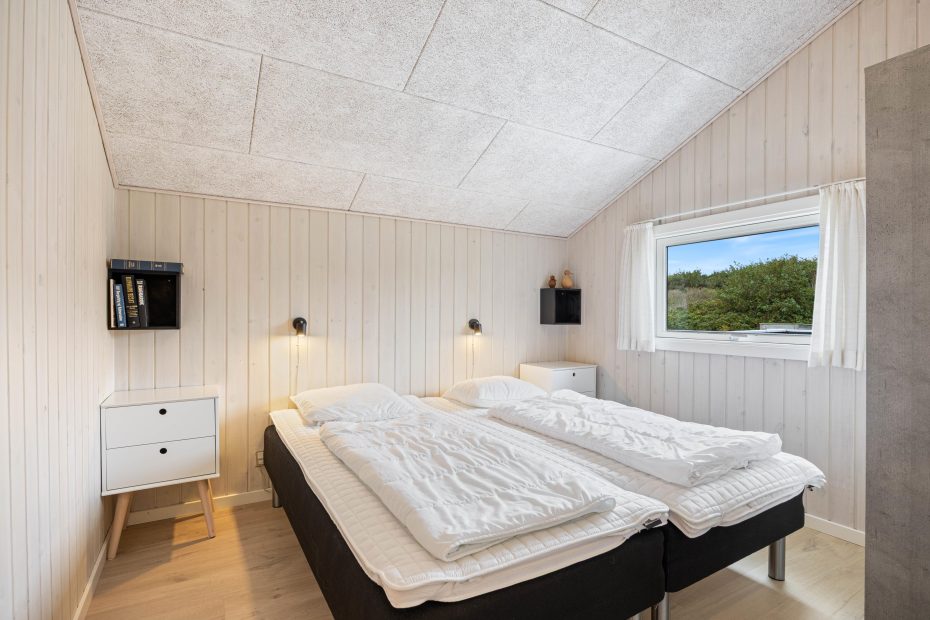 Dette hyggelige feriehus på Fyrmarken 40 er til 6 personer, fordelt på 3 soverum, 2 rum med dobbeltsenge og et med 2 enkelte senge.