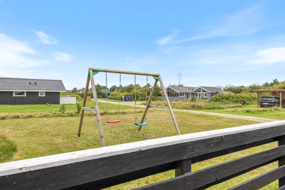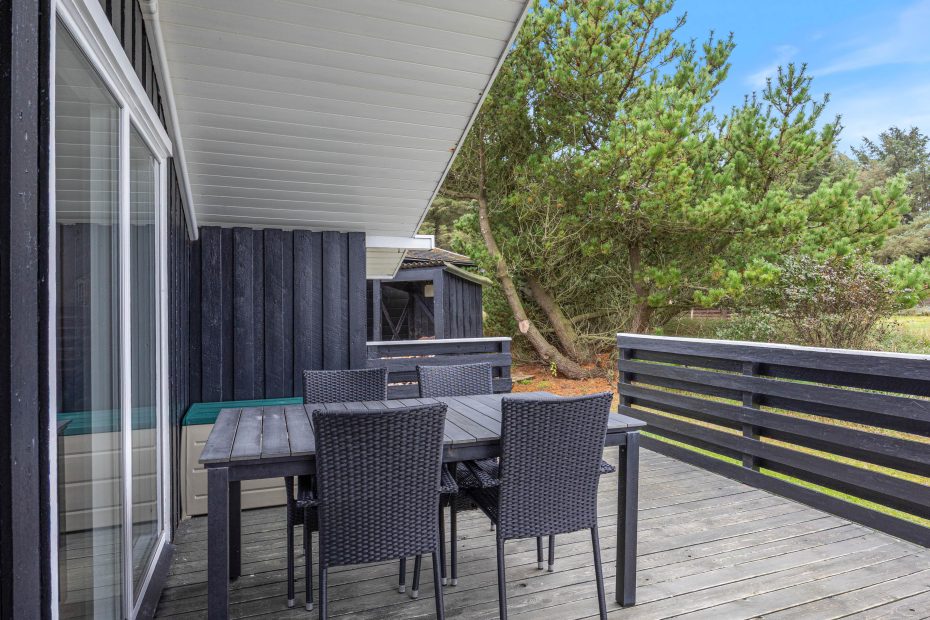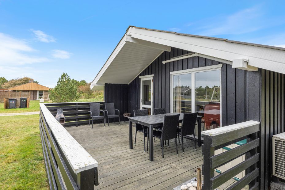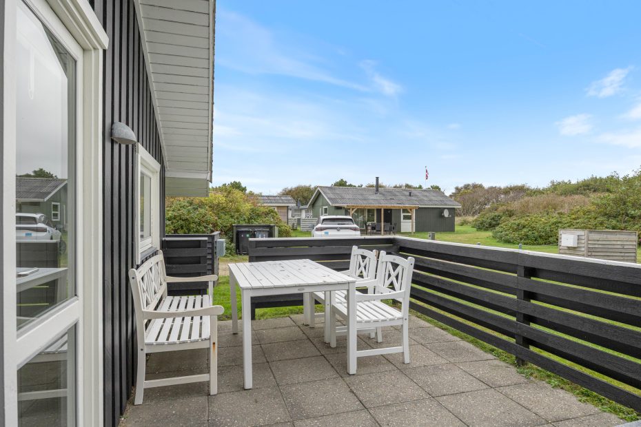 Hyggelige – og næsten lukkede terrasser – mod både øst og vest, sikrer jer mulighed for morgenkaffen til solopgangen og måske aftenkaffen til solnedgangen over klitterne. Terrasserne indbyder virkelig til skønne aftner, hvor man kan høre havets brusen i baggrunden, mens man f.eks. nyder en grillmiddag og et glas vin.