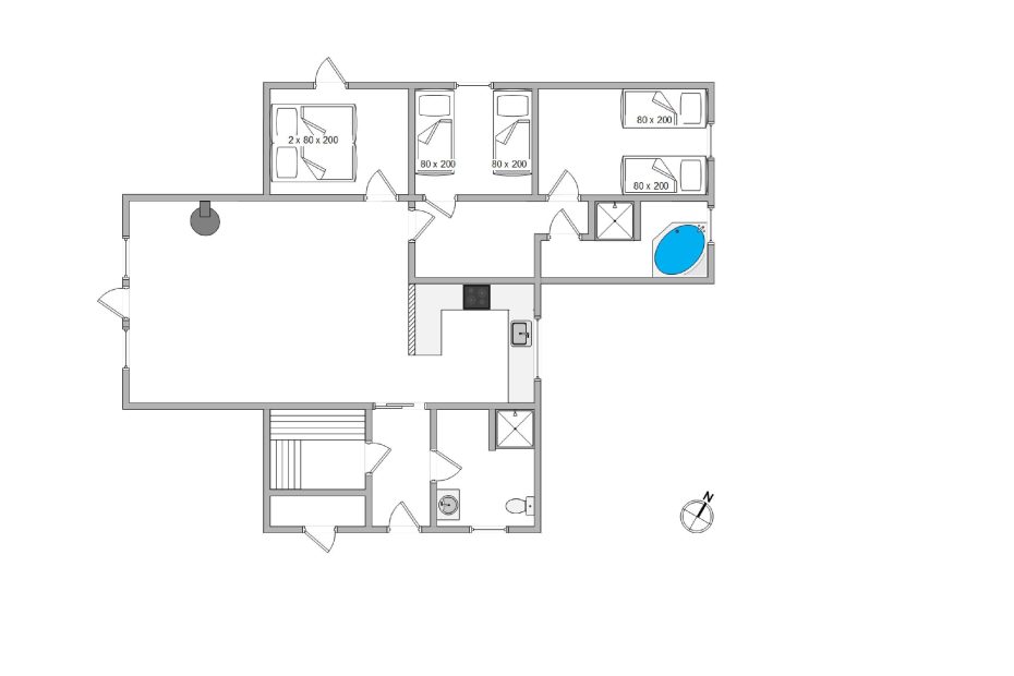 Et rigtigt hyggeligt sommerhus med en helt enestående beliggenhed i 1. klitrække, helt ud til det fredede klitområde mod vest og mod nord. Sommerhuset er velholdt og er løbende blevet renoveret. Der er 6 sovepladser i huset fordelt på 3 soveværelser. 2 af værelserne har hver en dobbeltseng, og på det sidste værelse er der 2 enkeltsenge. På badeværelset er der en bruseniche, et toilet og en vaskemaskine. Og overfor badeværelset ligger husets sauna. Derudover er der i et separat baderum med et spabad og en bruser. I køkkenet er der en fryser på 65 L, en mikroovn og en opvaskemaskine. I stuen er der et fladskærms-TV, en parabol, en DVD-afspiller, radio, en brændeovn og gratis trådløst internet.