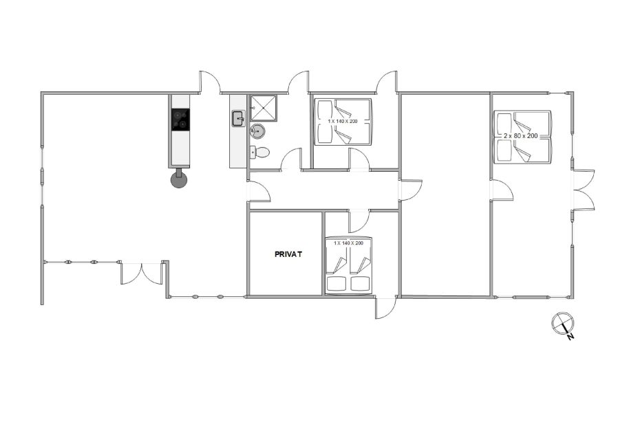 I det store opholdsrum og i soveværelserne går vinduerne fra gulv til loft, sådan at der kommer masser af lys ind i alle rum. Samtidig giver de store vinduer fuldt udblik til naturen lige uden for huset. Via den hurtige internetforbindelse kan I uploade jeres feriebilleder eller streame en film om aftenen.