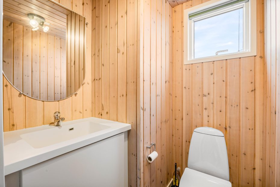 Et af sommerhusets highlights gemmer sig på det store badeværelse; det er nemlig indrettet med både spabad og sauna, så I kan komme helt ned i gear på ferien. Der er desuden et gæstetoilet, så I slipper for lange køer, når der skal børstes tænder og gøres klar til en ny feriedag i det vestjyske.