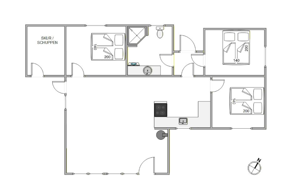 Dette dejlige sommerhus har 3 soveværelser, alle med dobbeltsenge. Badeværelset er med gulvvarme, en skøn bruseniche og en vaskemaskine. I køkkenet, der er placeret i forbindelse med stuen, finder du både opvaskemaskine, mikroovn og en fryser på 60 liter. I stuen er der store og flotte vinduespartier, både mod vest og mod syd, så man har dejligt udsyn over den smukke natur, hvor klitterne ses længst mod vest. I stuen er der en flot brændeovn med glaslåger, et fladskærms-TV, en radio m/CD-afspiller, parabol og gratis trådløst internet.