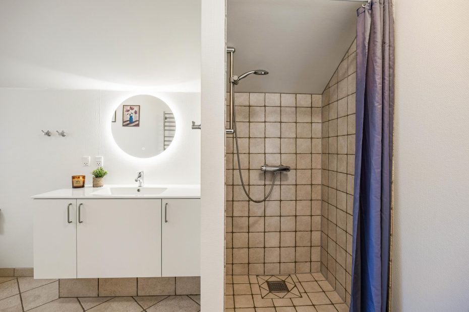 Efter en dag med udforskning og aktiviteter kan I slappe af i sommerhusets sauna og tømmespa, som sikrer en ultimativ afslappende oplevelse. Med to badeværelser er der rigeligt plads til alle, så ingen skal vente på tur. Begge badeværelser er derudover også udstyret med gulvvarme, så I skal ikke bekymre jer om kolde tæer på morgenerne