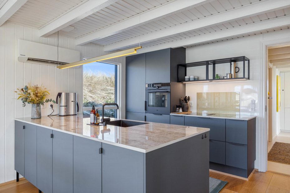 Fra det øjeblik I træder ind ad døren, vil I straks føle jer hjemme i sommerhuset. Det er flot og lyst indrettet med hvide vægge og lofter, som gør det rigtig indbydende og sørger for en behagelig atmosfære. Det lækre moderne køkken og stuen er slået sammen, så der er mulighed for samvær og hygge, selv når aftensmaden skal tilberedes eller feriens kommende aktiviteter planlægges. Her er lagt op til mange skønne ferieminder i den virkelig dejlige indretning. I kan synke ned i sofaen og slappe af og få ladet op mentalt, mens maden tilberedes.